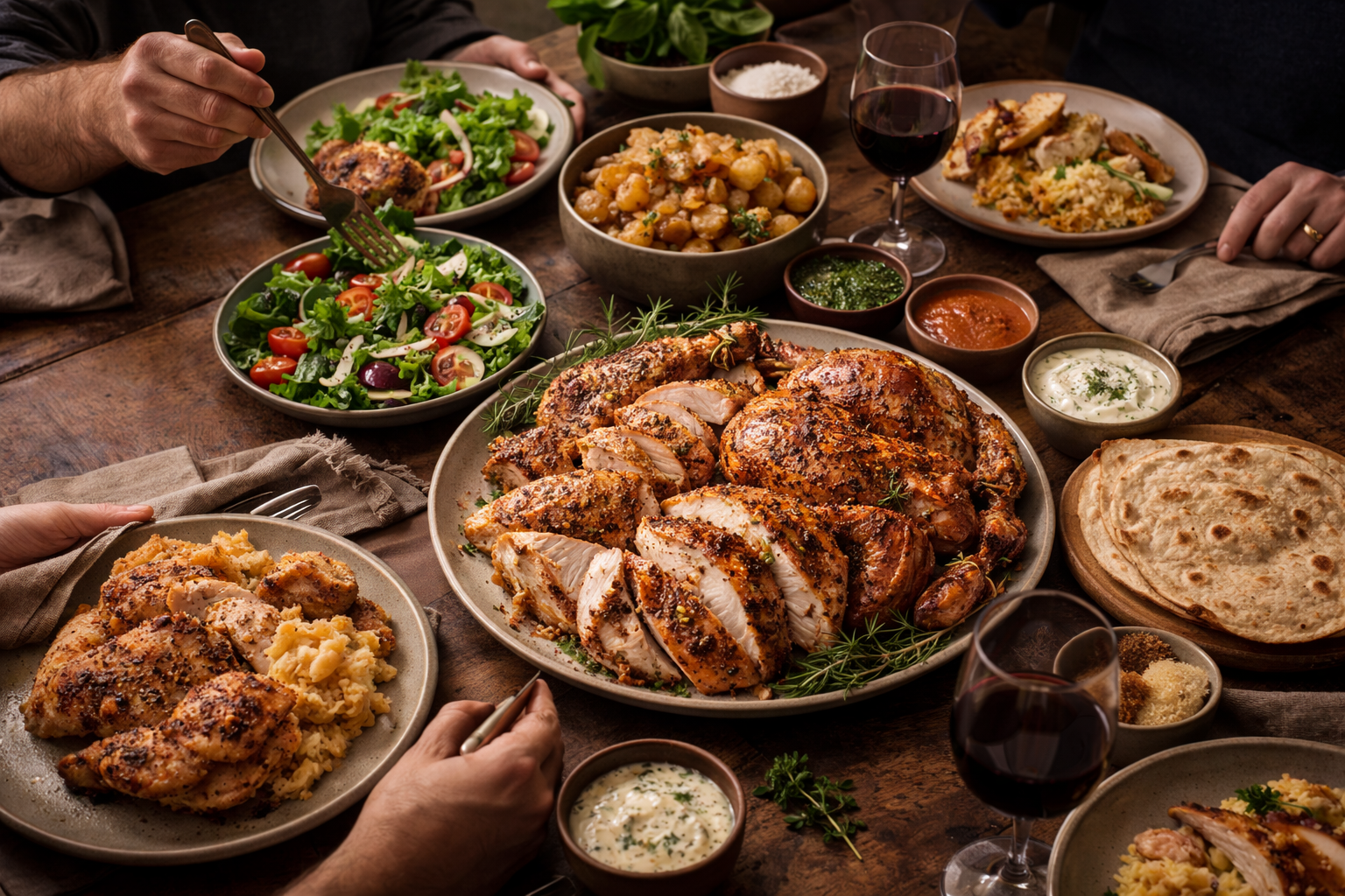 A full meal, built to share around the table.